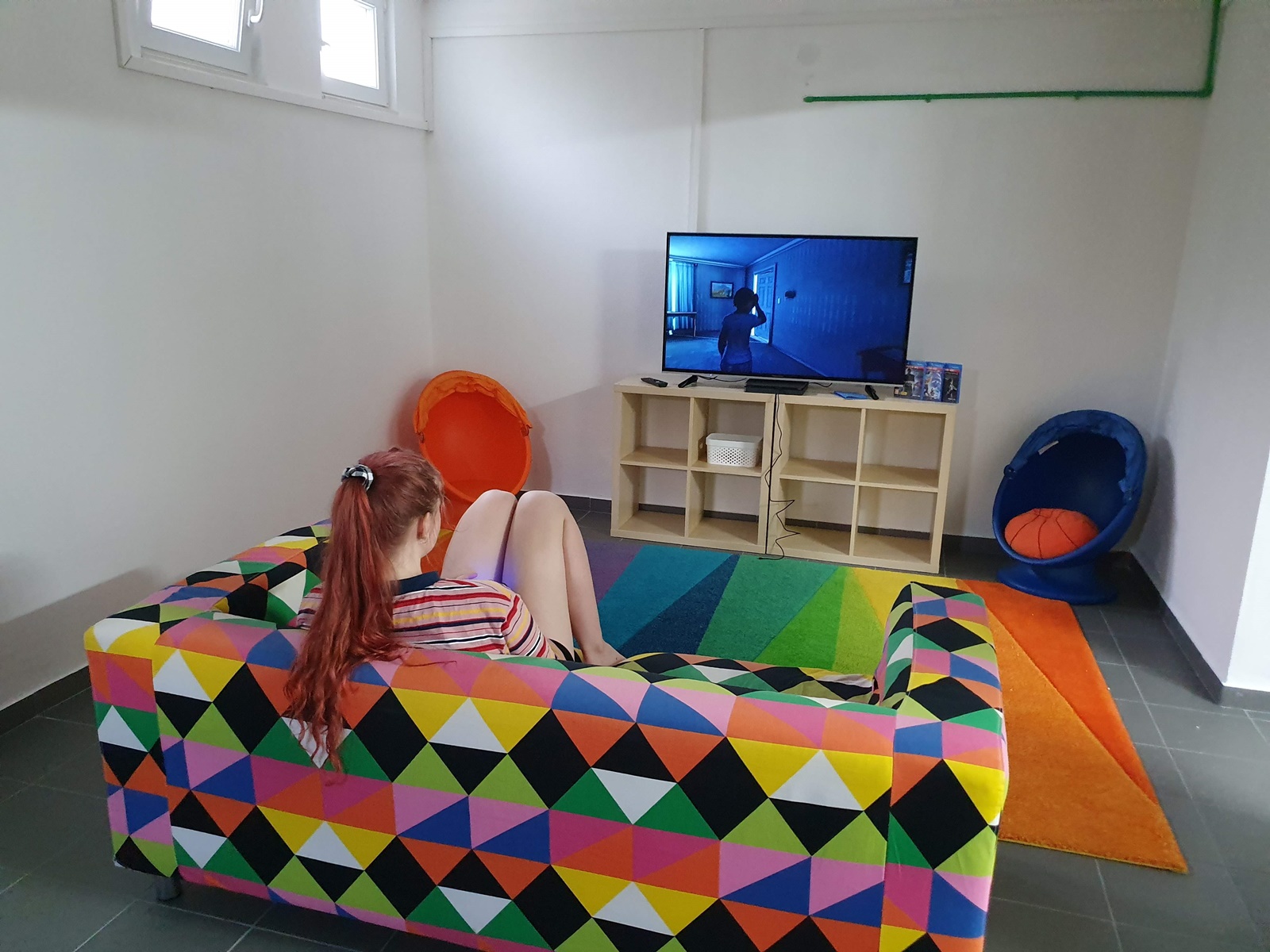 Kælder: ”Gaming Room”, bord fodbold, dart, play station med spil.